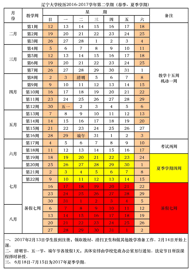 2016-2017学年第二学期(春季、夏季学期)校历-国产一区二区日本在线