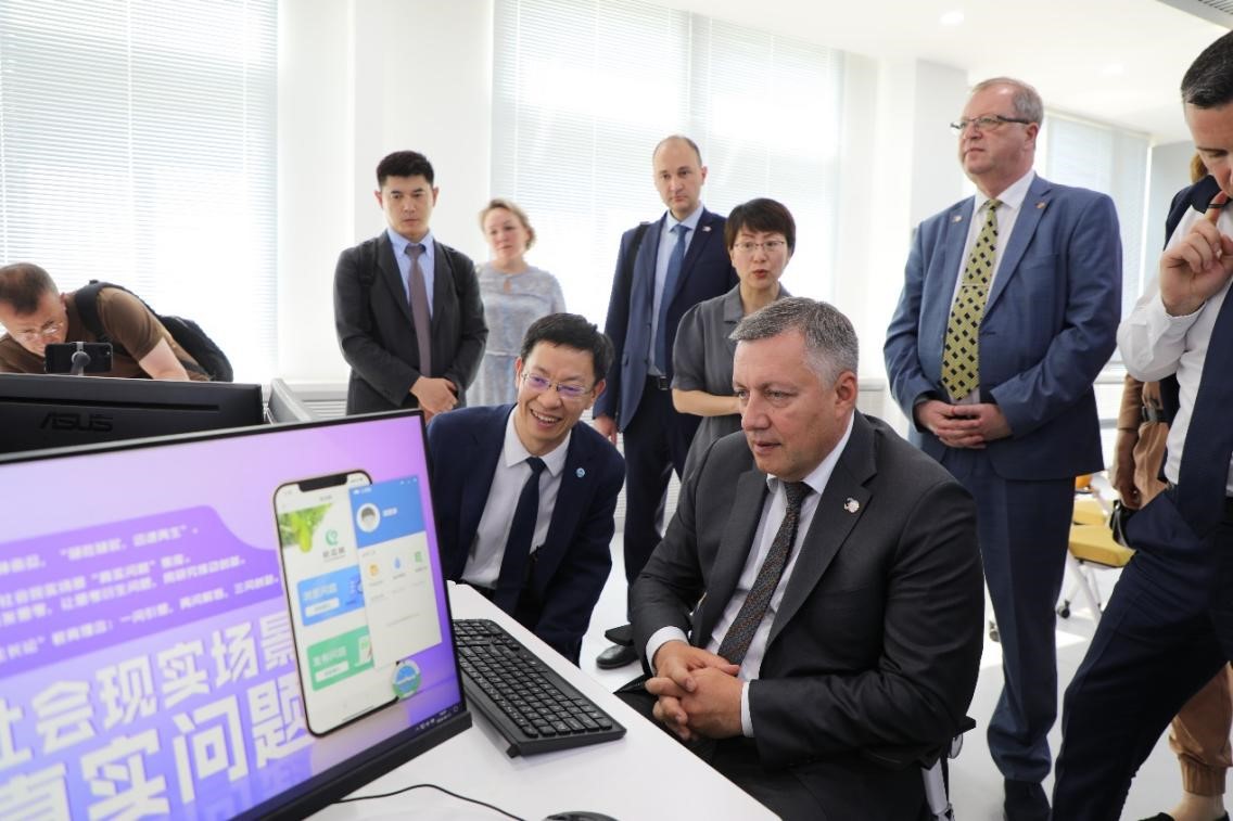 交流活动期间,校长余淼杰陪同伊尔库茨克州教育交流代表团参观了国产一区二区日本在线云经济实验室、场景作用机理实验室和校史馆,对国产一区二区日本在线的发展历程及创新型科研成果进行介绍。